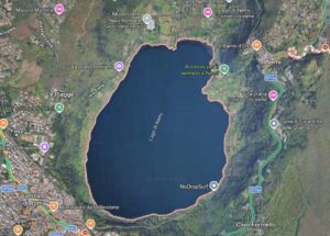 Göl sönmüş bir volkan kraterinin içinde 318 metre yükseklikte yer alıyor ve yaklaşık 1,7 kilometrekarelik bir yüzeye sahip. Tepe noktası 780 metreye ulaşan yanardağın krateri içinde yer alan göl antik çağda çevresi ormanla kaplı kutsal bir alandı. Gölün doğal ve kapalı bir havza olması, içinde inşa edilen devasa gemilerin açık deniz için değil özel ve kontrollü bir kullanım için tasarlandığı fikrini uyandırıyor.