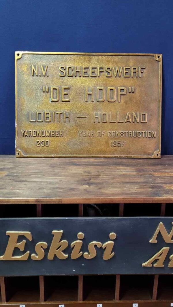 N.V. Sheepswerf tersanesine ait De Hoop isimli gemi isim plaketi
