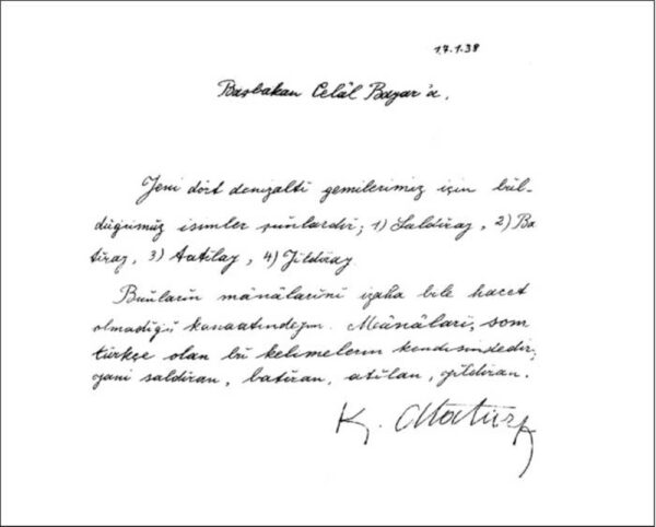 İsimleri 17.01.1938 tarihinde bizzat Atatürk tarafından Başbakan Celal Bayar’a imzalı not ile bildirilmiştir,