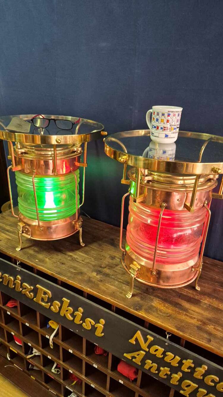 2 adet bakır demir fenerinden kahve sehpası uygulaması,