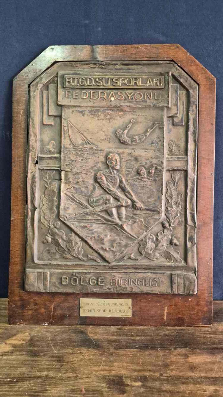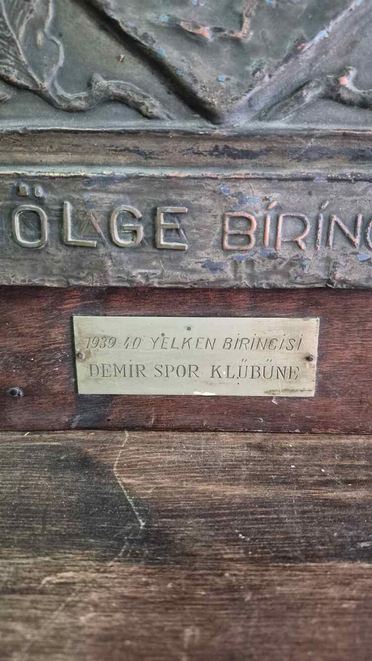 Bu plaket 1939-1940 yılları döneminde Bölge Birinciliği alan “Yelken Birincisi Demir Spor Klübüne” verilmiştir.