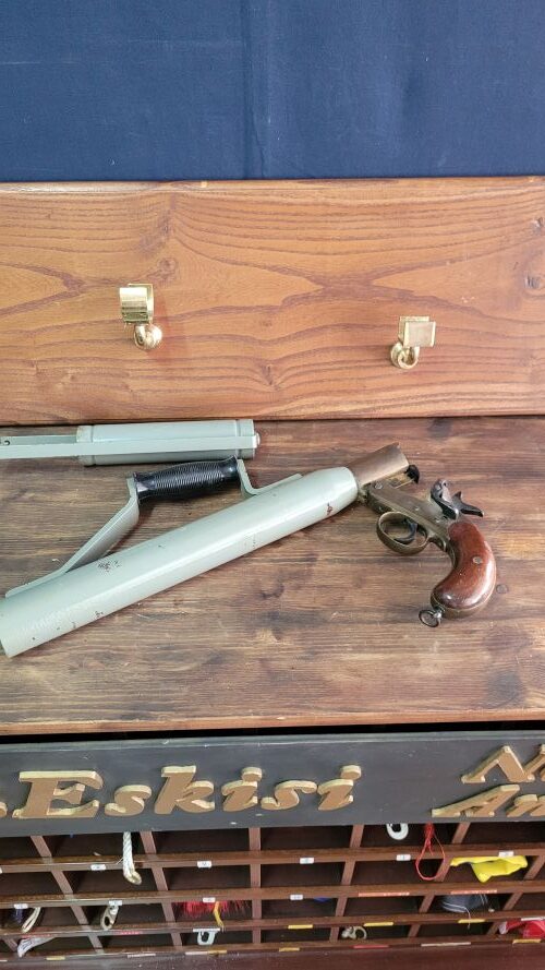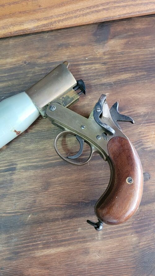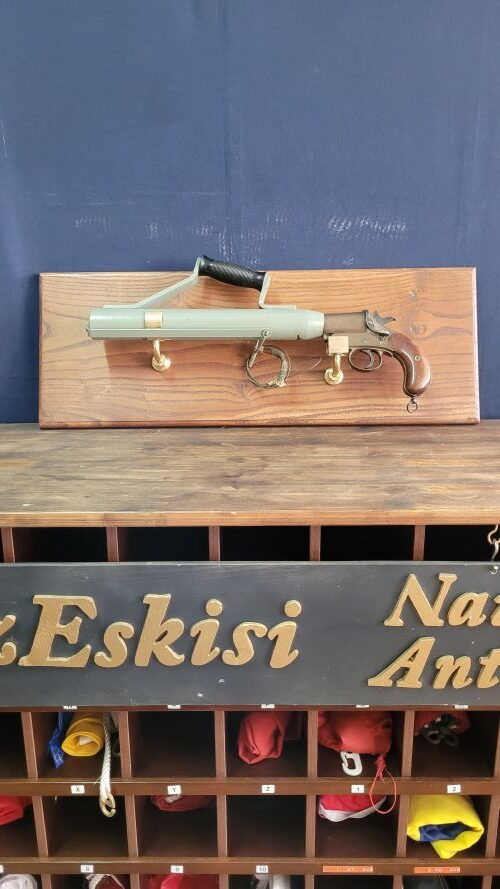 Orijinal İngiliz Donanması II. Dünya Savaşı dönemi Schermuly halat fırlatıcısı (No.2 MK5).