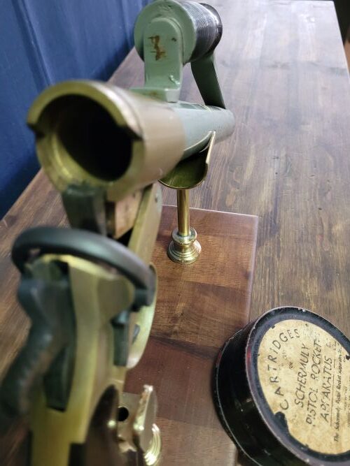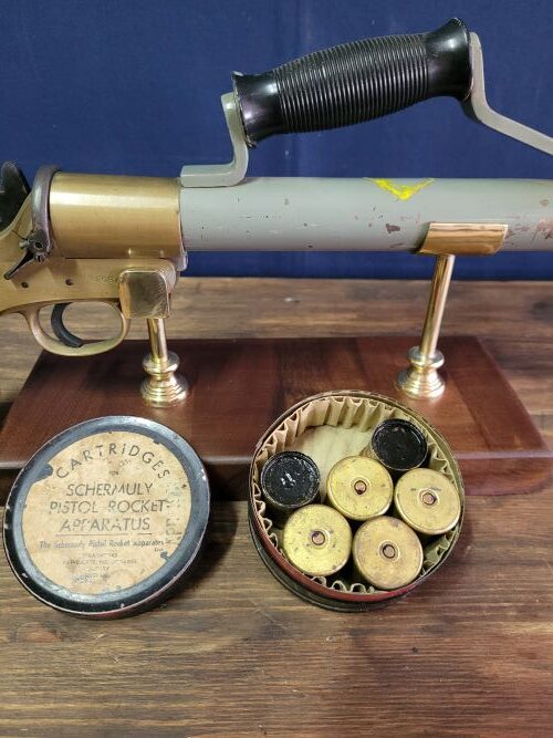 20874 seri numarası ile 1923 yılı öncesi yaşa sahip, ilaveten Schermuly marka 6 adet işaret fişeğini orijinal kutusunda,