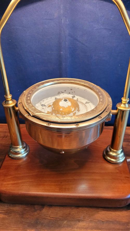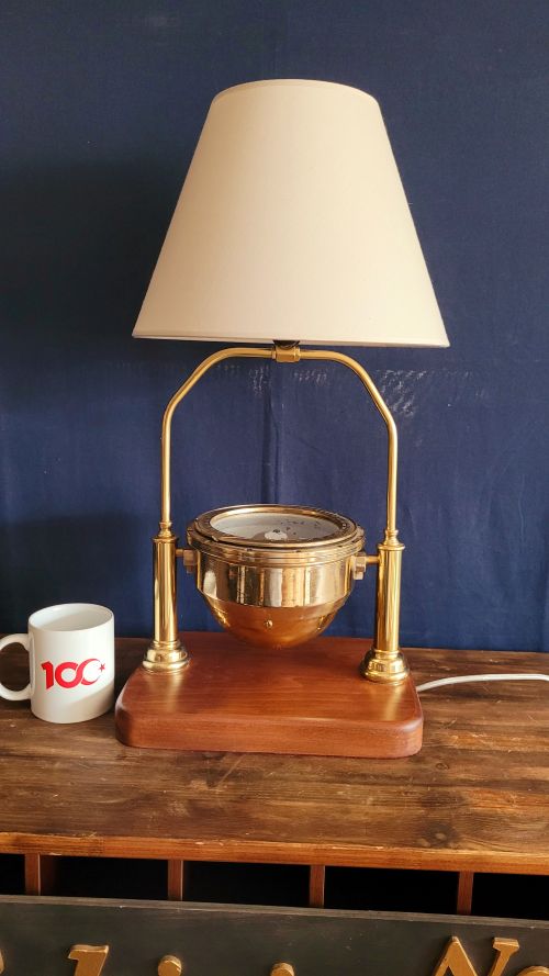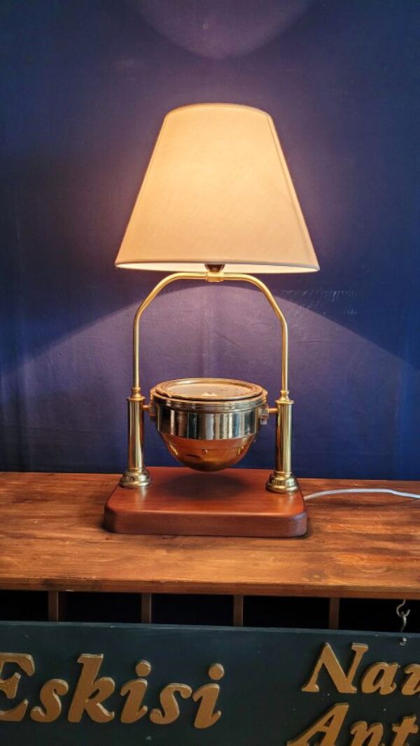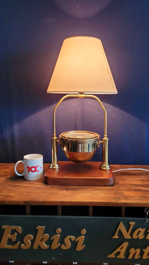 Masif ahşap taban üzerine oturtulmuş Sovyetler Birliği döneminden kalma pusuladan abajur