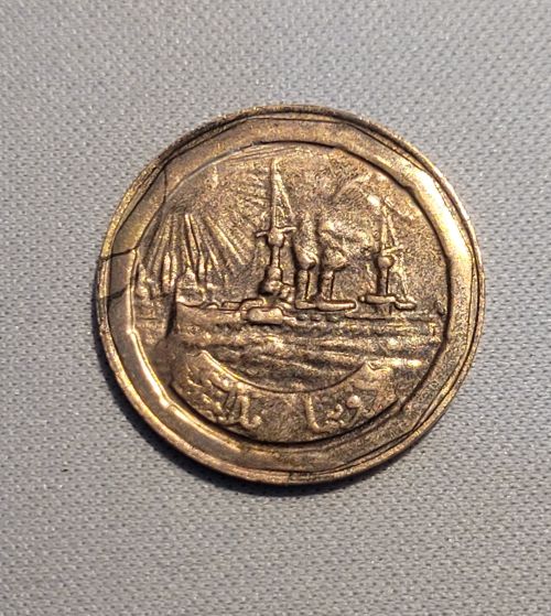 Arka yüzünde gemi motifi ve Osmanlıca yazısı var